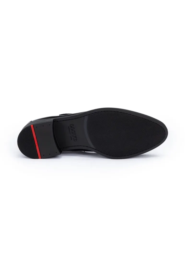 The LLOYD SLIPPER is a stylish statement for discerning women who appreciate both elegance and quality. Made from high-quality smooth leather, this monk shoe impresses with its classic yet modern silhouette. The elegant buckle fastening gives the shoe a sophisticated touch, while the round toe guarantees comfort and timeless grace. With a 100% leather lining, the SLIPPER caresses the foot and is comfortable to wear. The black color scheme makes it a versatile choice for both business and festive occasions. An essential accessory in any wardrobe – the LLOYD SLIPPER exudes self-confidence and style.