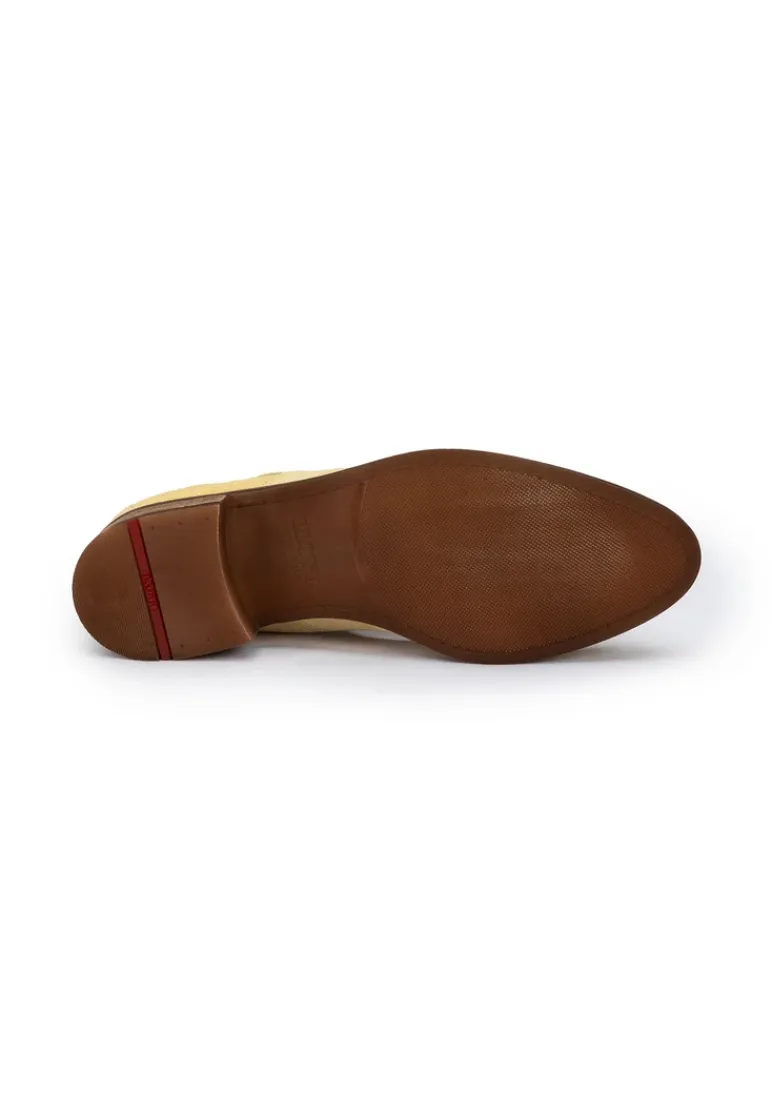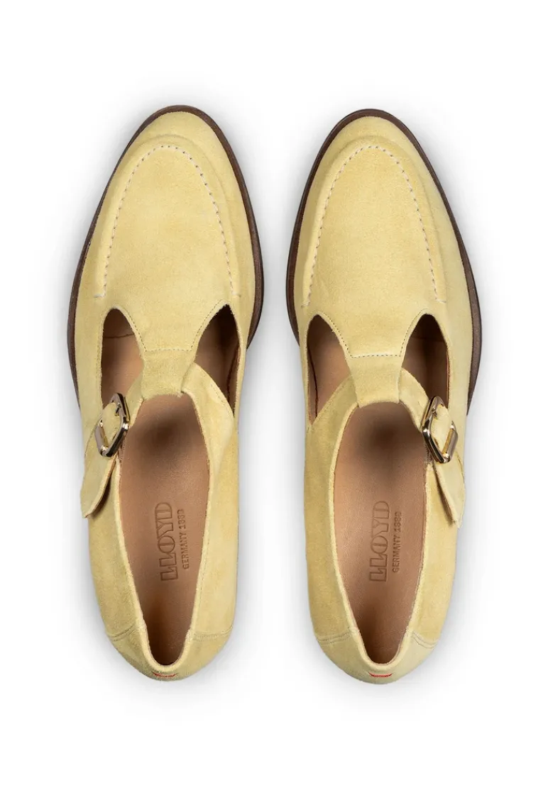 The LLOYD SLIPPER combines elegant design with high-quality workmanship and is the perfect choice for festive occasions. The fine suede upper in a vibrant yellow gives the shoe a contemporary touch, while the round toe and chic buckle emphasize the elegant look. The lining is made of 100% leather and ensures a comfortable fit. With its rubber sole and robust construction, the SLIPPER is both stylish and functional. As a classic monk shoe, this model is aimed at the fashion-conscious woman who values quality and timeless design. Enjoy the combination of luxury and versatility that the LLOYD SLIPPER offers you.