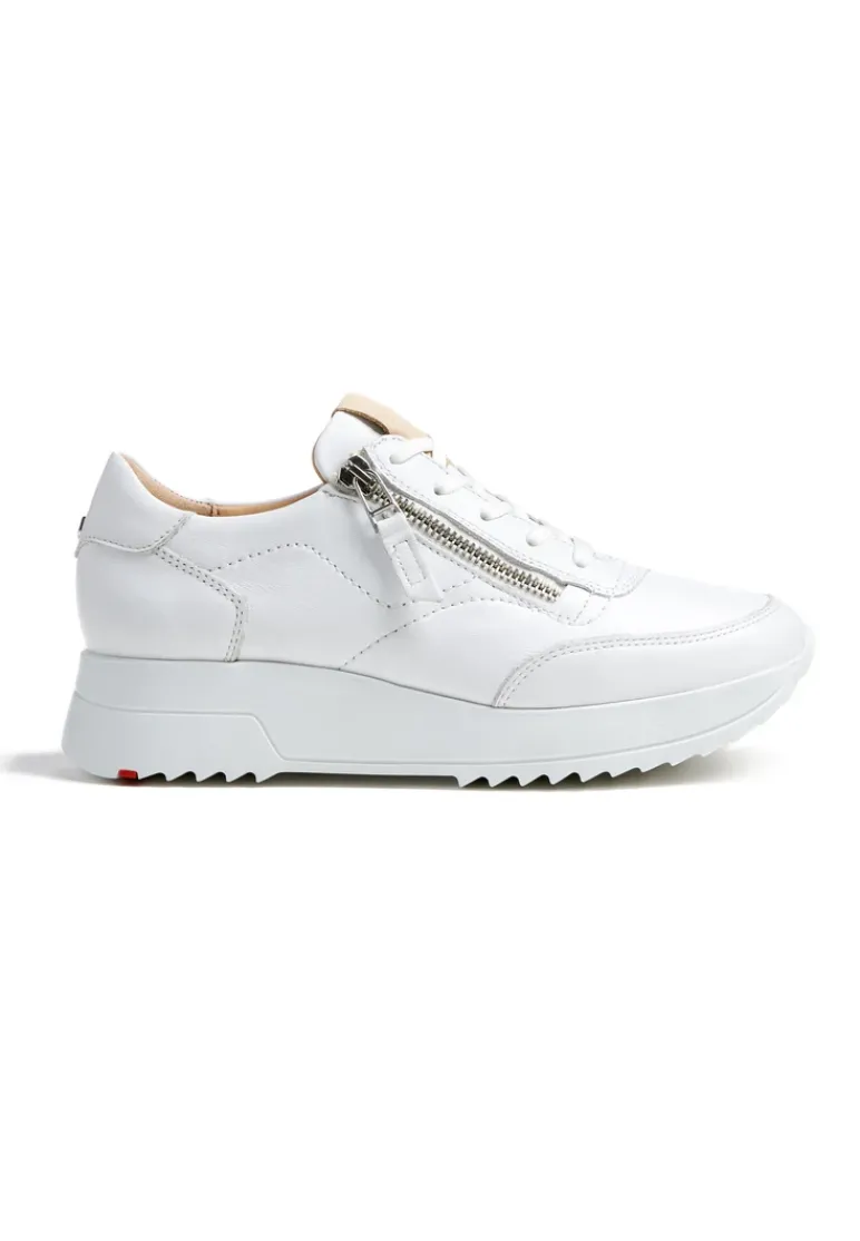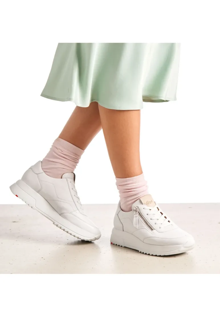 The LLOYD low-top trainers crafted from smooth leather feature an extremely light and shock-absorbent sole. In these lace-up shoes, a sporty look is a given. A non-slip rubber sole is utilized. This cushions the impact when walking while the leather lining of the inner sole offers optimal heat regulation. Easy fastening as well as comfort are guaranteed by the soft smooth leather upper, the zip fastening and laces. These women’s shoes are breathable and comfortable thanks to the leather lining. The model has an Extralight sole which means it is especially lightweight and flexible as well as non-slip and shock-absorbent.