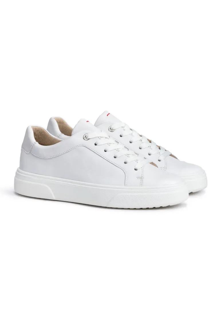 The LLOYD low-top trainers crafted from white smooth leather feature a classic design. In these shoes, a sporty look is a given. A flexible rubber sole is used. This cushions the impact when walking while the leather of the inner sole ensures optimal heat regulation. A firm, secure grip and a classic, elegant appearance are ensured by the soft smooth leather upper and the laces. These shoes are breathable and comfortable thanks to the leather lining. The model has a Variofootbed that is optimally suited for the use of inlays due to the removable insole.