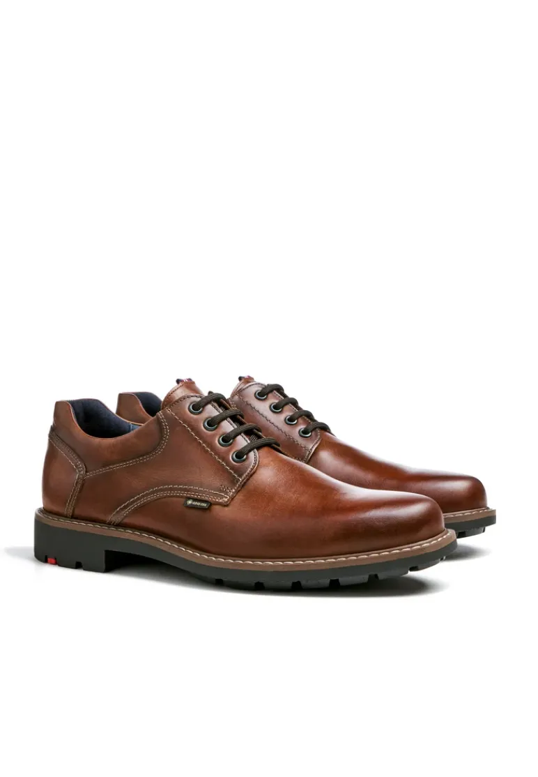 Make a statement with the LLOYD derby shoes »VANJA« made from brown smooth leather and an all over waterproof and extremely breathable GORE-TEX membrane suited for any weather. A secure fit with lace fastening is guaranteed in these shoes. The non-slip rubber sole cushions the impact when walking perfectly. Additionally, the leather of the inner sole provides optimal heat regulation. The laces as well as the soft smooth leather upper ensure a classic, elegant look and a firm, secure grip. By use of the leather and textile lining these lace-up shoes, men’s lace-up shoes are comfortable and breathable. With the GORE-TEX technology, the model is temperated comfortably guaranteeing a healthy foot climate.